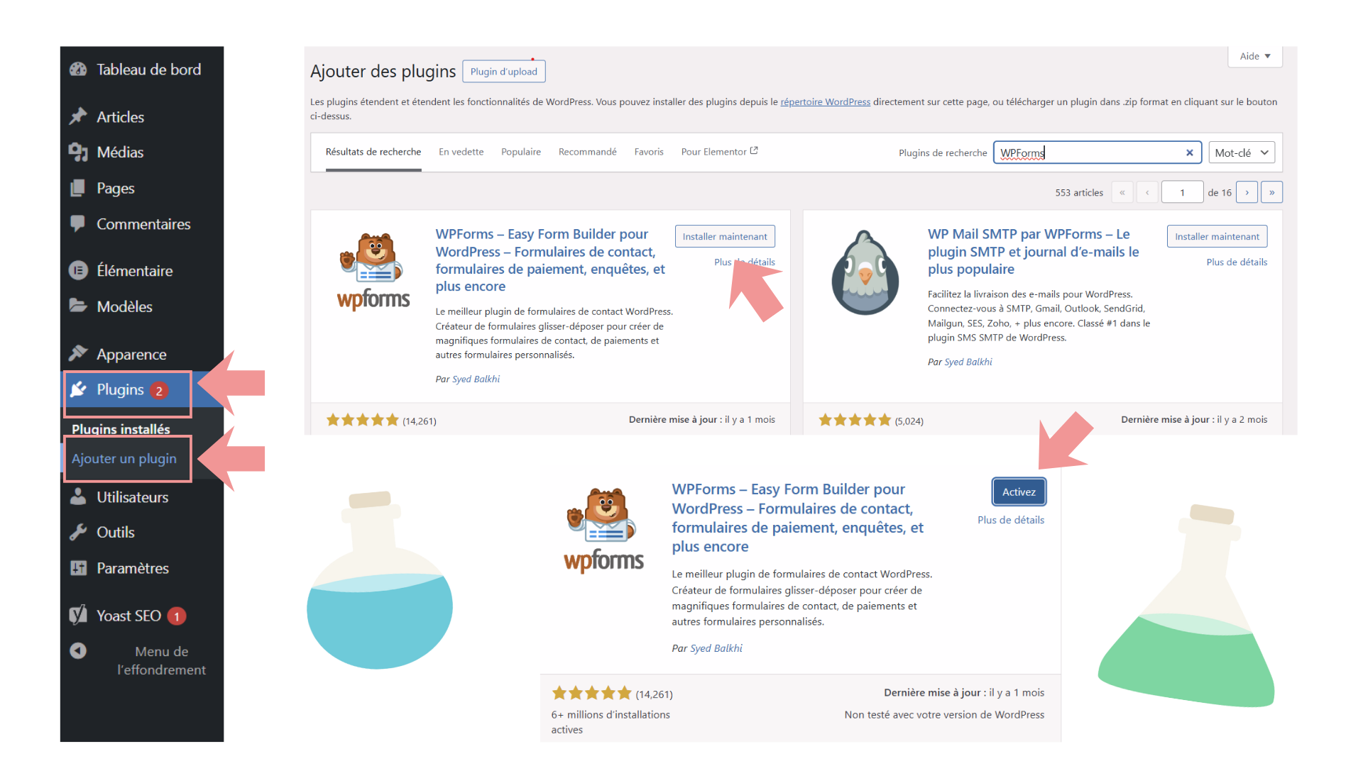 Etape 1 : Si WPForms n’est pas installé (la base de la base)
